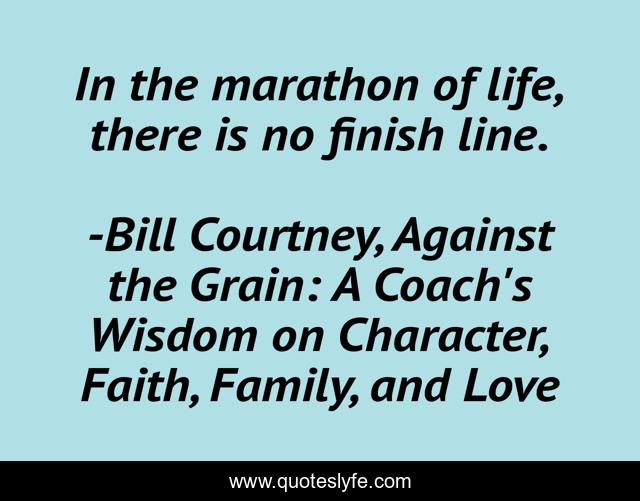 This page presents the quote "In the marathon of life, there is no finish line.". Author of this quote is Bill Courtney, Against the Grain: A Coach's Wisdom on Character, Faith, Family, and Love. This quote is about life, coach, inspire, no, finish, team, line, marathon,.