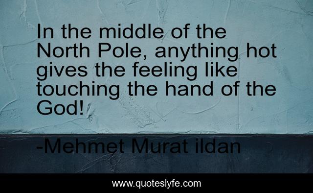 This page presents the quote "In the middle of the North Pole, anything hot gives the feeling like touching the hand of the God!". Author of this quote is Mehmet Murat ildan. .