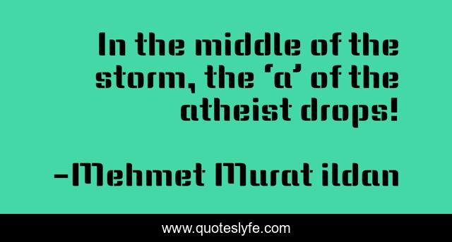 This page presents the quote "In the middle of the storm, the ‘a’ of the atheist drops!". Author of this quote is Mehmet Murat ildan. .