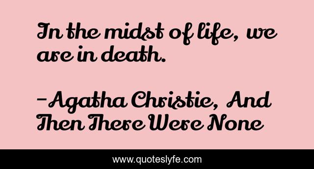 This page presents the quote "In the midst of life, we are in death.". Author of this quote is Agatha Christie, And Then There Were None. This quote is about life, death,.