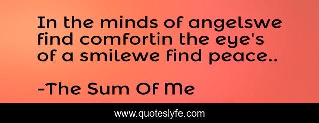 This page presents the quote "In the minds of angelswe find comfortin the eye's of a smilewe find peace..". Author of this quote is The Sum Of Me. This quote is about peace, angel, loving,.
