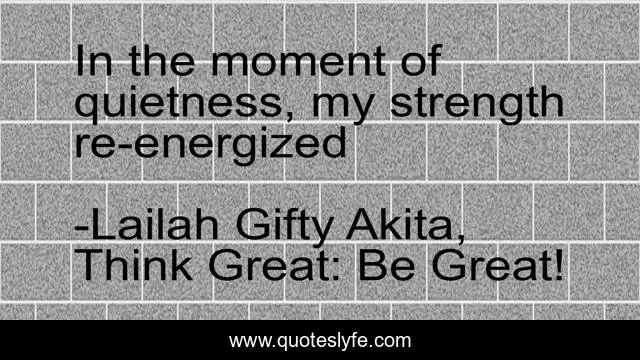 "Lailah Gifty Akita, Think Great: Be Great! Quotes." Quoteslyfe.com, 2025. Tue. 09 Dec. 2025. <https://www.quoteslyfe.com/quote/In-the-moment-of-quietness-my-strength-62548>.
