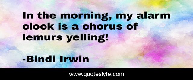 This page presents the quote "In the morning, my alarm clock is a chorus of lemurs yelling!". Author of this quote is Bindi Irwin. This quote is about alarm, yelling, clock,.