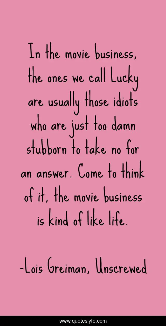 This page presents the quote "In the movie business, the ones we call Lucky are usually those idiots who are just too damn stubborn to take no for an answer. Come to think of it, the movie business is kind of like life.". Author of this quote is Lois Greiman, Unscrewed. This quote is about mystery, chick-lit, humor,.