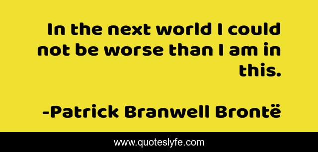 This page presents the quote "In the next world I could not be worse than I am in this.". Author of this quote is Patrick Branwell Brontë. .