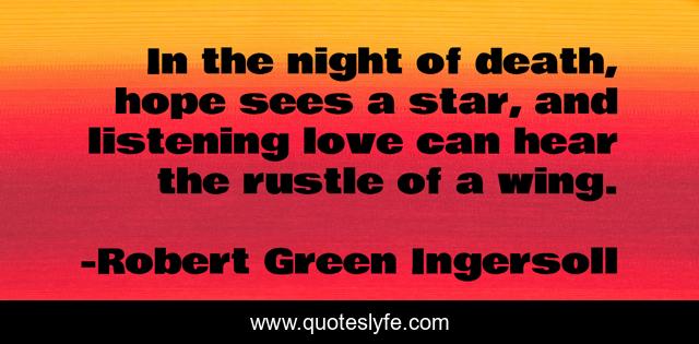 This page presents the quote "In the night of death, hope sees a star, and listening love can hear the rustle of a wing.". Author of this quote is Robert Green Ingersoll. This quote is about death, love, listening, affection,.