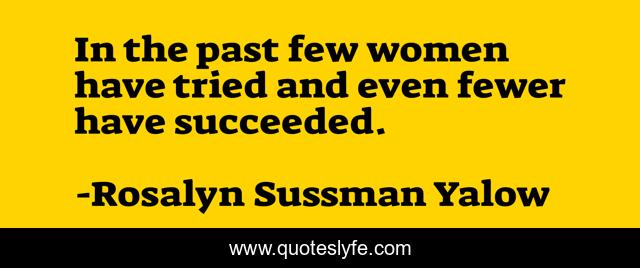 "Rosalyn Sussman Yalow Quotes." Quoteslyfe.com, 2025. Tue. 09 Dec. 2025. <https://www.quoteslyfe.com/quote/In-the-past-few-women-have-tried-264295>.