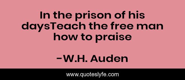 This page presents the quote "In the prison of his daysTeach the free man how to praise". Author of this quote is W.H. Auden. .