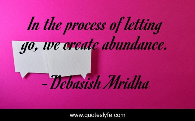 This page presents the quote "In the process of letting go, we create abundance.". Author of this quote is Debasish Mridha. This quote is about process-of-letting-go, create-abundance, letting-go, philosophy, debasish-mridha, quotes, debasish-mridha-md, inspirational, enthusiasm,.