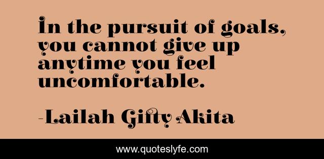 This page presents the quote "In the pursuit of goals, you cannot give up anytime you feel uncomfortable.". Author of this quote is Lailah Gifty Akita. This quote is about confidence, pursuit-of-goals, positive, motivational, determination, optimistic, overcomer, never-give-up,.
