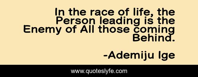 This page presents the quote "In the race of life, the Person leading is the Enemy of All those coming Behind.". Author of this quote is Ademiju Ige. .