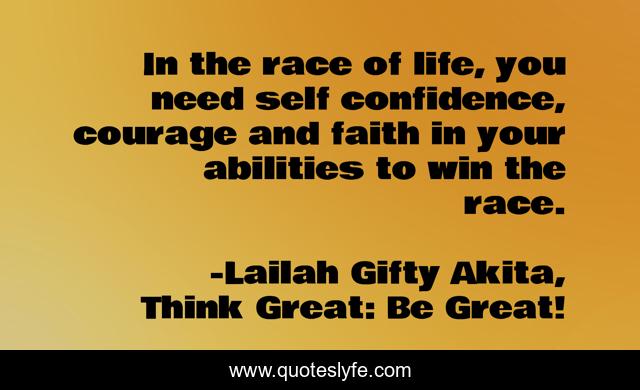 In the race of life, you need self confidence, courage and faith in your abilities to win the race.