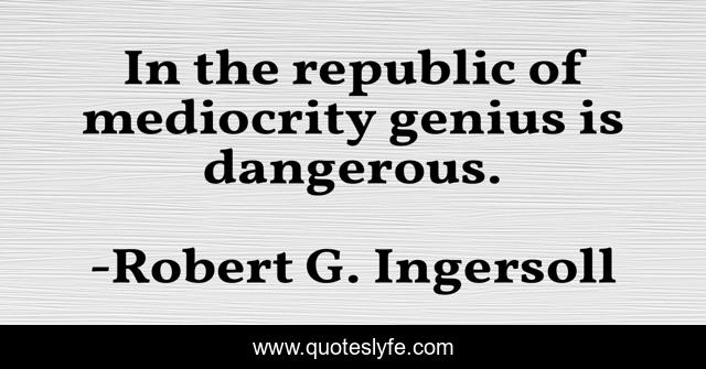 "Robert G. Ingersoll Quotes." Quoteslyfe.com, 2025. Mon. 08 Dec. 2025. <https://www.quoteslyfe.com/quote/In-the-republic-of-mediocrity-genius-is-266174>.