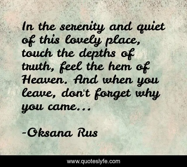 "Oksana Rus Quotes." Quoteslyfe.com, 2025. Sat. 06 Dec. 2025. <https://www.quoteslyfe.com/quote/In-the-serenity-and-quiet-of-this-133024>.