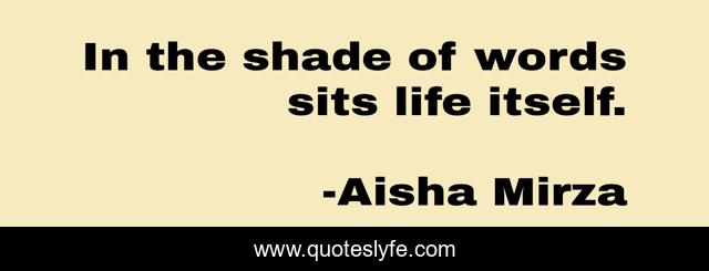 This page presents the quote "In the shade of words sits life itself.". Author of this quote is Aisha Mirza. This quote is about life, poetry, words, reflection,.