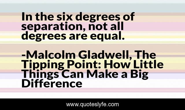 "Malcolm Gladwell, The Tipping Point: How Little Things Can Make a Big Difference Quotes." Quoteslyfe.com, 2025. Sat. 06 Dec. 2025. <https://www.quoteslyfe.com/quote/In-the-six-degrees-of-separation-not-237532>.