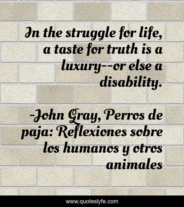 This page presents the quote "In the struggle for life, a taste for truth is a luxury--or else a disability.". Author of this quote is John Gray, Perros de paja: Reflexiones sobre los humanos y otros animales. .