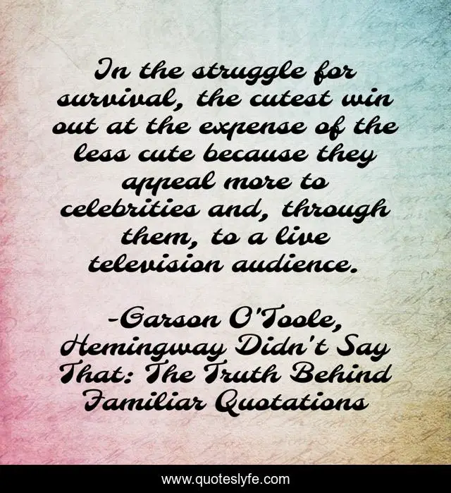 "Garson O'Toole, Hemingway Didn't Say That: The Truth Behind Familiar Quotations Quotes." Quoteslyfe.com, 2025. Fri. 05 Dec. 2025. <https://www.quoteslyfe.com/quote/In-the-struggle-for-survival-the-cutest-196068>.