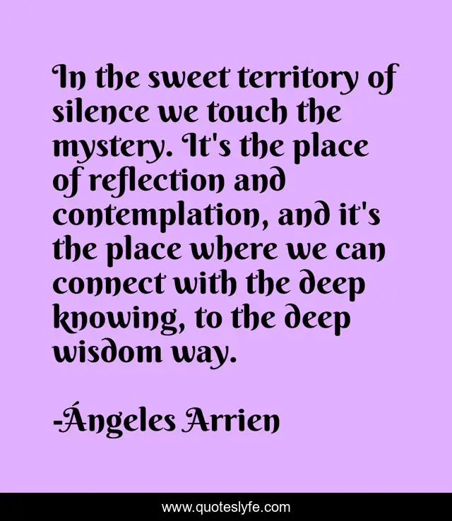 "Ángeles Arrien Quotes." Quoteslyfe.com, 2025. Tue. 09 Dec. 2025. <https://www.quoteslyfe.com/quote/In-the-sweet-territory-of-silence-we-146634>.