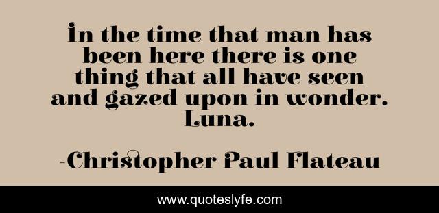 This page presents the quote "In the time that man has been here there is one thing that all have seen and gazed upon in wonder. Luna.". Author of this quote is Christopher Paul Flateau. This quote is about luna, wonder, time-passing, moon, time,.