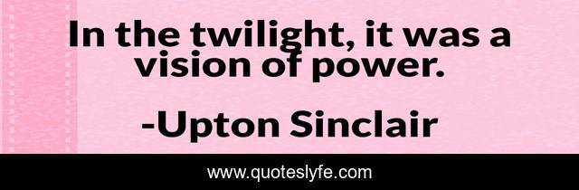 This page presents the quote "In the twilight, it was a vision of power.". Author of this quote is Upton Sinclair. This quote is about twilight, vision,.