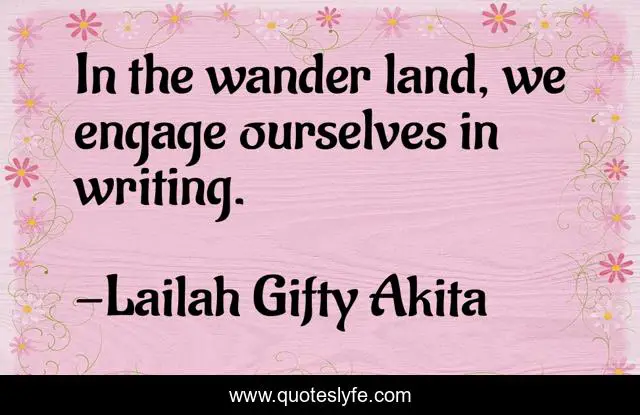 This page presents the quote "In the wander land, we engage ourselves in writing.". Author of this quote is Lailah Gifty Akita. This quote is about writers-life, creativity, writing,.
