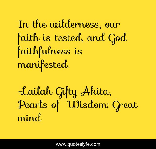 "Lailah Gifty Akita, Pearls of Wisdom: Great mind Quotes." Quoteslyfe.com, 2025. Sun. 07 Dec. 2025. <https://www.quoteslyfe.com/quote/In-the-wilderness-our-faith-is-tested-111181>.