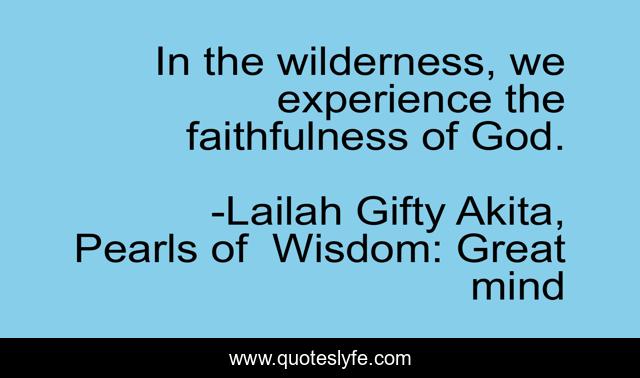 "Lailah Gifty Akita, Pearls of Wisdom: Great mind Quotes." Quoteslyfe.com, 2025. Sat. 06 Dec. 2025. <https://www.quoteslyfe.com/quote/In-the-wilderness-we-experience-the-faithfulness-62334>.