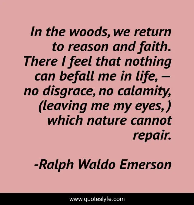 In the woods, we return to reason and faith. There I feel that nothing can befall me in life, — no disgrace, no calamity, (leaving me my eyes, ) which nature cannot repair.