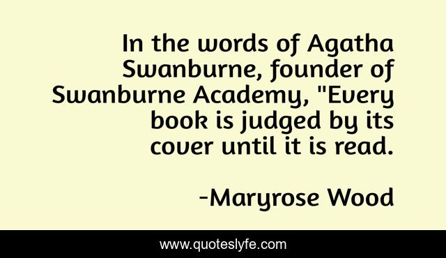This page presents the quote "In the words of Agatha Swanburne, founder of Swanburne Academy, "Every book is judged by its cover until it is read.". Author of this quote is Maryrose Wood. .