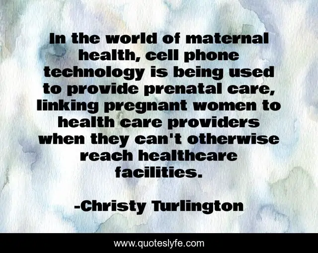 This page presents the quote "In the world of maternal health, cell phone technology is being used to provide prenatal care, linking pregnant women to health care providers when they can't otherwise reach healthcare facilities.". Author of this quote is Christy Turlington. This quote is about world, technology, women,.