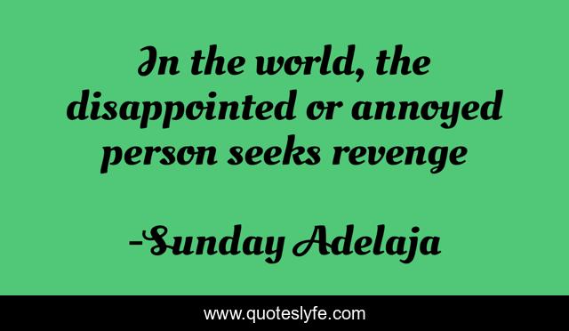 This page presents the quote "In the world, the disappointed or annoyed person seeks revenge". Author of this quote is Sunday Adelaja. This quote is about life, calling, purpose, goals, fulfillment,.