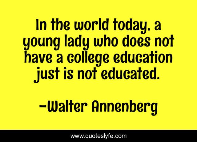 This page presents the quote "In the world today, a young lady who does not have a college education just is not educated.". Author of this quote is Walter Annenberg. This quote is about world, college, today,.