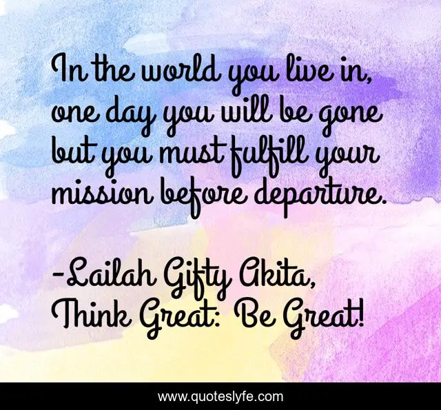 In the world you live in, one day you will be gone but you must fulfill your mission before departure.