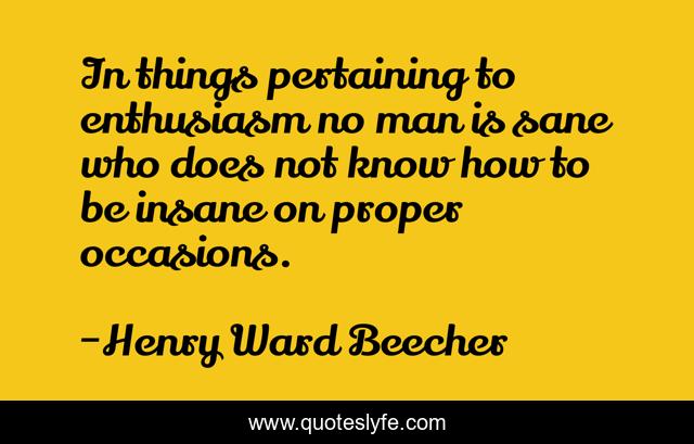 This page presents the quote "In things pertaining to enthusiasm no man is sane who does not know how to be insane on proper occasions.". Author of this quote is Henry Ward Beecher. .
