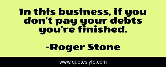 This page presents the quote "In this business, if you don't pay your debts you're finished.". Author of this quote is Roger Stone. This quote is about pay, finished,.