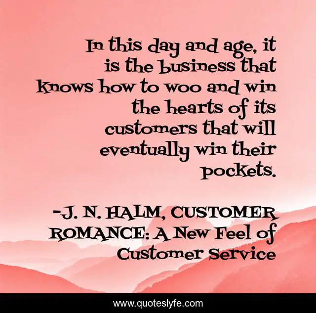 This page presents the quote "In this day and age, it is the business that knows how to woo and win the hearts of its customers that will eventually win their pockets.". Author of this quote is J. N. HALM, CUSTOMER ROMANCE: A New Feel of Customer Service. This quote is about marketing, business, customer-service,.