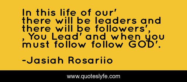 This page presents the quote "In this life of our' there will be leaders and there will be followers', , You Lead' and when you must follow follow GOD'.". Author of this quote is Jasiah Rosariio. .