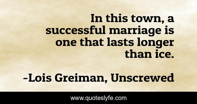 This page presents the quote "In this town, a successful marriage is one that lasts longer than ice.". Author of this quote is Lois Greiman, Unscrewed. This quote is about mystery, chick-lit, humor,.