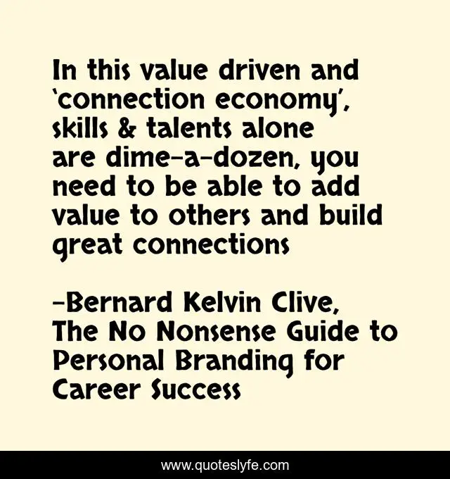 "Bernard Kelvin Clive, The No Nonsense Guide to Personal Branding for Career Success Quotes." Quoteslyfe.com, 2025. Fri. 05 Dec. 2025. <https://www.quoteslyfe.com/quote/In-this-value-driven-and-connection-economy-256210>.