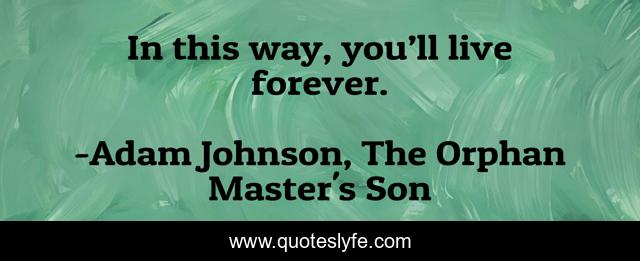 This page presents the quote "In this way, you’ll live forever.". Author of this quote is Adam Johnson, The Orphan Master's Son. .