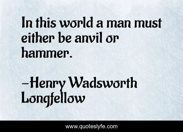 This page presents the quote "In this world a man must either be anvil or hammer.". Author of this quote is Henry Wadsworth Longfellow. .