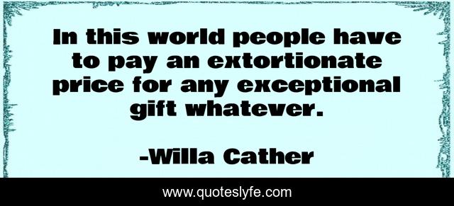 This page presents the quote "In this world people have to pay an extortionate price for any exceptional gift whatever.". Author of this quote is Willa Cather. .