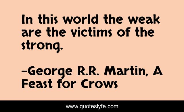 This page presents the quote "In this world the weak are the victims of the strong.". Author of this quote is George R.R. Martin, A Feast for Crows. This quote is about strong, weak,.