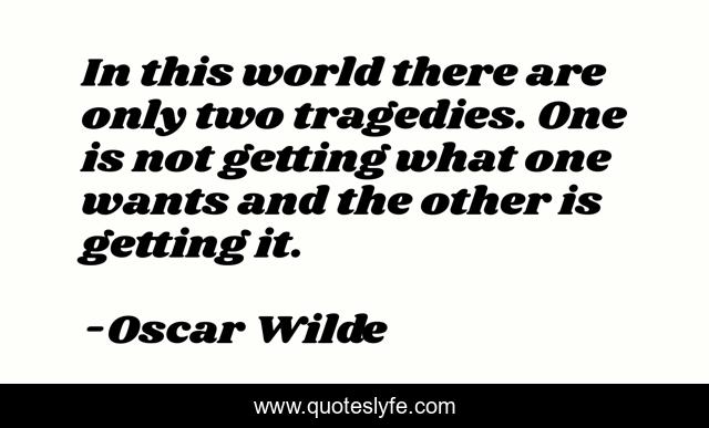 This page presents the quote "In this world there are only two tragedies. One is not getting what one wants and the other is getting it.". Author of this quote is Oscar Wilde. .