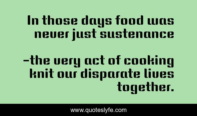 "the very act of cooking knit our disparate lives together. Quotes." Quoteslyfe.com, 2025. Tue. 09 Dec. 2025. <https://www.quoteslyfe.com/quote/In-those-days-food-was-never-just-253555>.