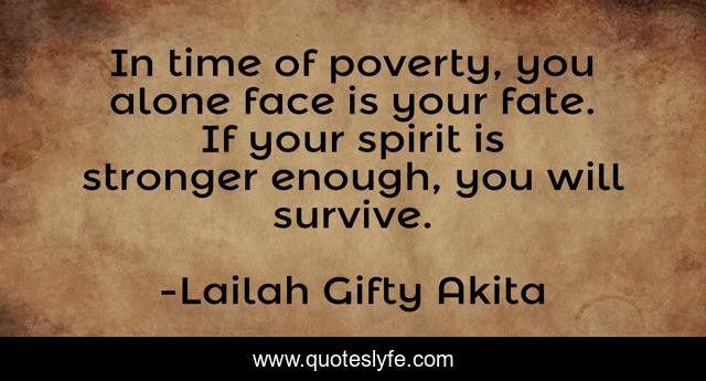 This page presents the quote "In time of poverty, you alone face is your fate. If your spirit is stronger enough, you will survive.". Author of this quote is Lailah Gifty Akita. This quote is about enthusiasm, strength, poverty, adversity, inspirational,.