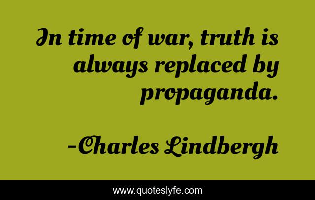 This page presents the quote "In time of war, truth is always replaced by propaganda.". Author of this quote is Charles Lindbergh. This quote is about truth is, truth, time,.