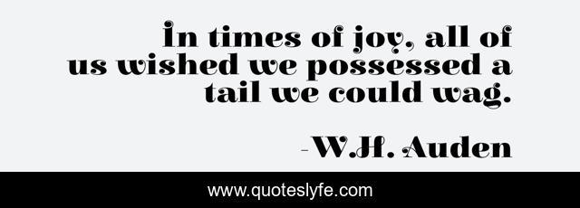 This page presents the quote "In times of joy, all of us wished we possessed a tail we could wag.". Author of this quote is W.H. Auden. .