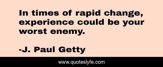 This page presents the quote "In times of rapid change, experience could be your worst enemy.". Author of this quote is J. Paul Getty. This quote is about enemy, worst, change,.